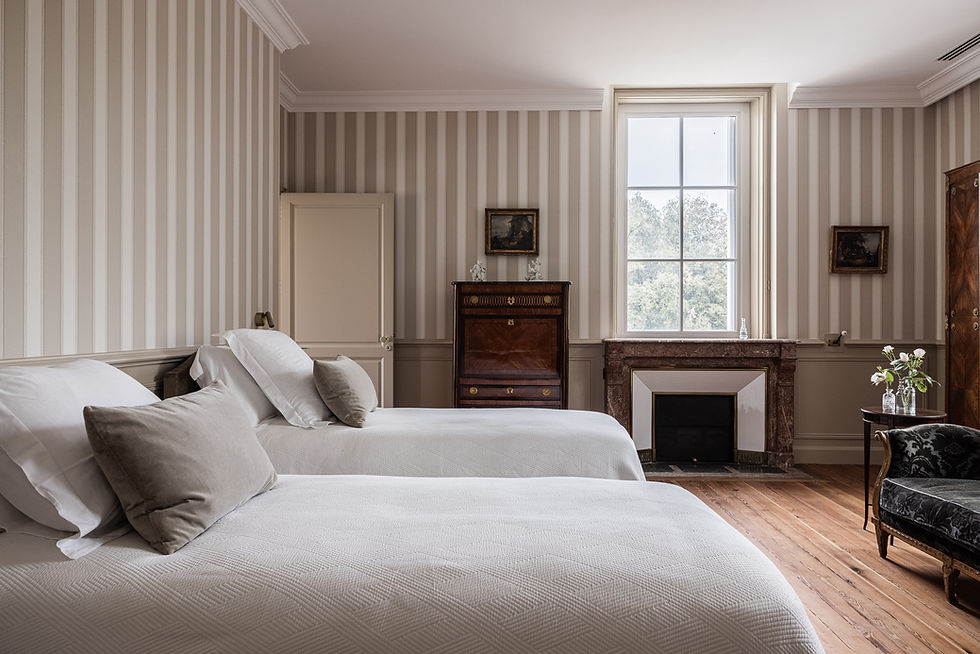 Nos deux suites offrent une atmosphère intime et chaleureuse, reflet de l'âme de cette maison de famille. Promenez-vous dans le parc, détendez-vous dans nos salons et commencez chaque journée avec un petit déjeuner de saison, servi selon vos envies : dans la salle à manger, en chambre, ou sur la terrasse.